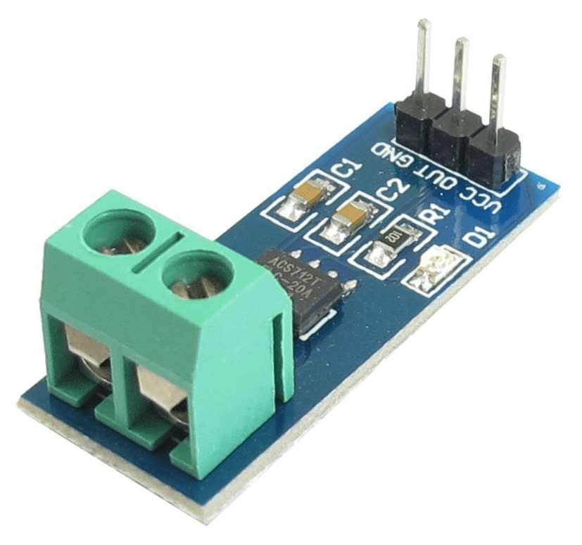 The 20A Range Current Sensor Module ACS712 consists of a precise, low-offset, linear Hall circuit with a copper conduction path located near the surface of the die. Applied current flowing through this copper conduction path generates a magnetic field in which the Hall IC converts into a proportional voltage.
