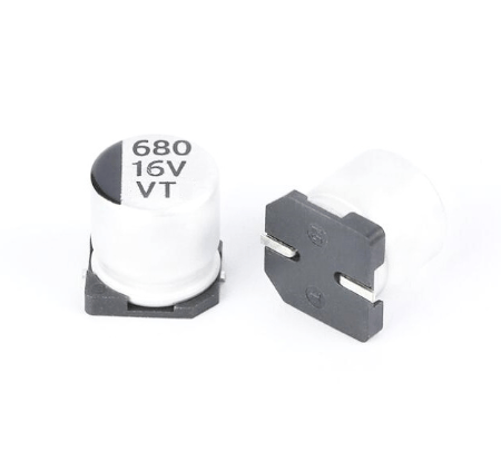 It is a 680uF 16V DC Polymer Aluminium SMD Capacitor. The capacitor contains an insulator between relative conductors in an electrode.