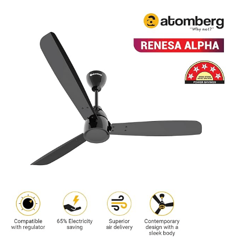 Everything we do at Atomberg is centred around our core belief “Why not?”. Why not use smart technology to make lives easier and better way not work towards an energy-efficient future Renesa Alpha is built on that belief. All our fans are powered by BLDC technology: Brushless Direct Current. Which means that they consume only 32 watts while running at the highest speed. Which in turn means that you can save up to Rs.1500 per fan per year on your electricity bills! It doesn’t end there. It runs almost three times longer on inverter.It is compatible with a regular regulator. It is just what your smart home deserves. Now that we have discussed the high-tech stuff, let us tell you about how why our fans are so gorgeous and functional at the same time. This variant has aluminium blades which are completely rust-free. The longer span of the blades results in wider air spread and better air delivery. It is just what your gorgeous home deserves. And that is what we do. Make smart things without compromising on the aesthetics. Because, why not?