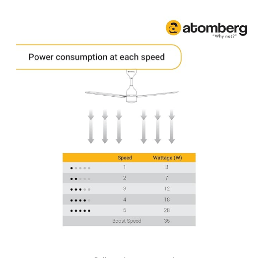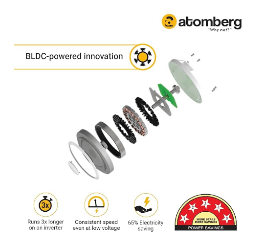 - Super Energy Efficient BLDC Motor: Consumes only 32W on the highest Speed