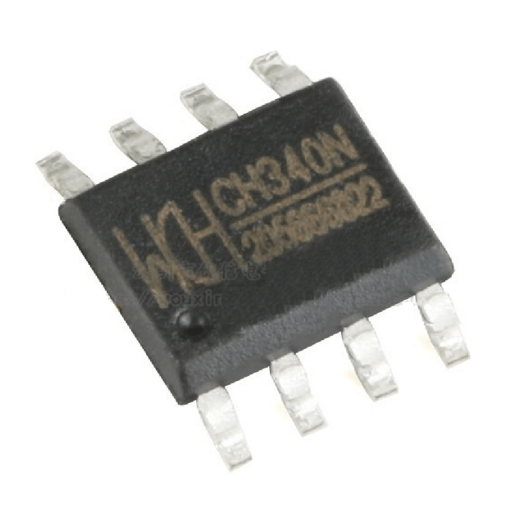 The CH340N is a USB to Serial Bridge IC with a built-in 12MHz crystal, encapsulated in an SOP8 150mil (8-PIN) package. It offers a compact and integrated solution for interfacing USB with serial communication, making it suitable for various applications.