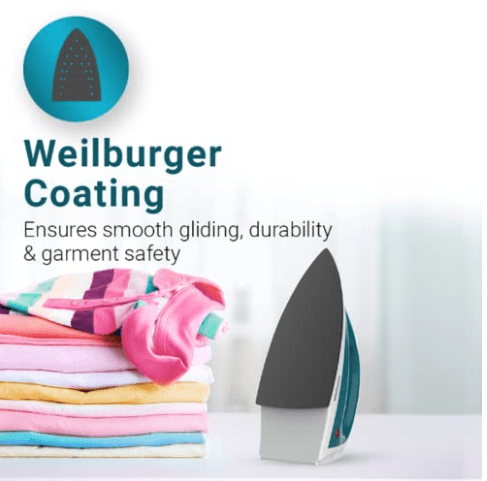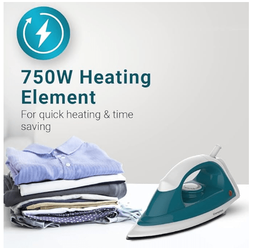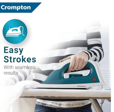 | Crompton’s Entice comes with 750 Watt powerful heating element which ensures quick heating and time-saving. | Entice dry iron comes with an Aerodynamic design which helps in smooth gliding over the fabric and also complements the overall look. | Entice comes with Weilburger Coating that tends to ease your job with easy gliding on the clothes. Also, it helps in enhancing the durability and sturdy usage of iron. | ||