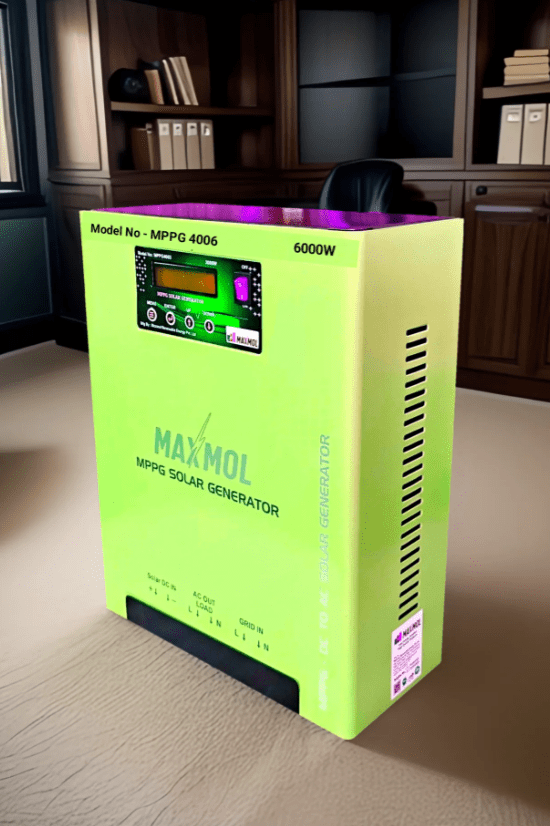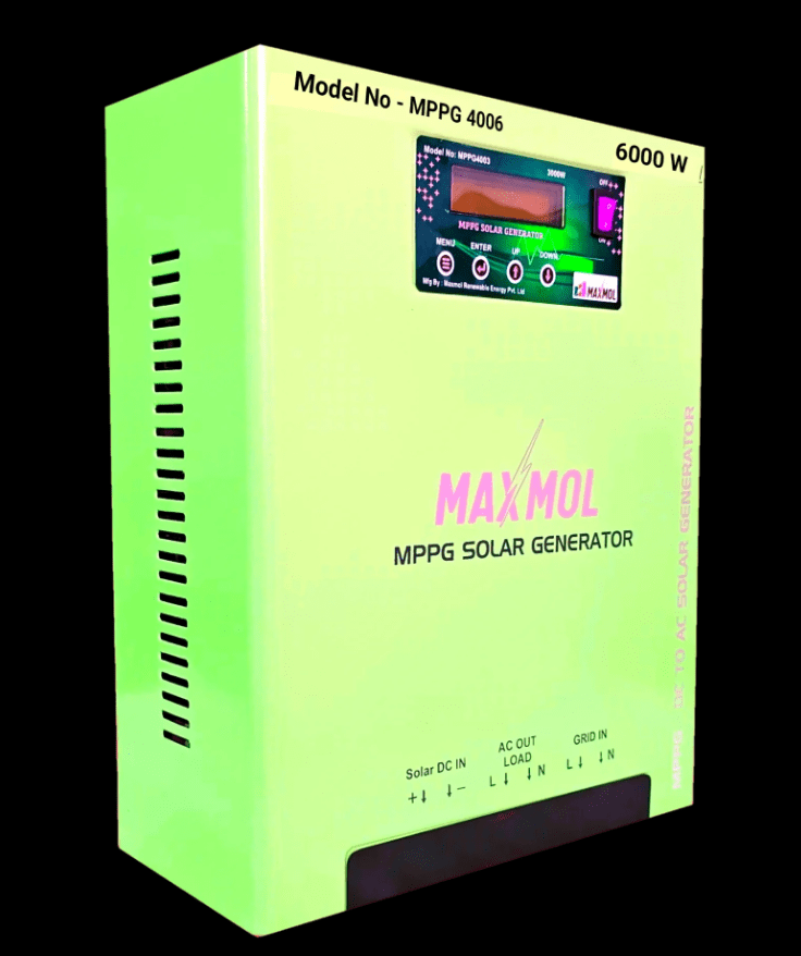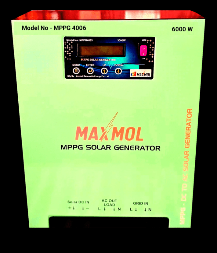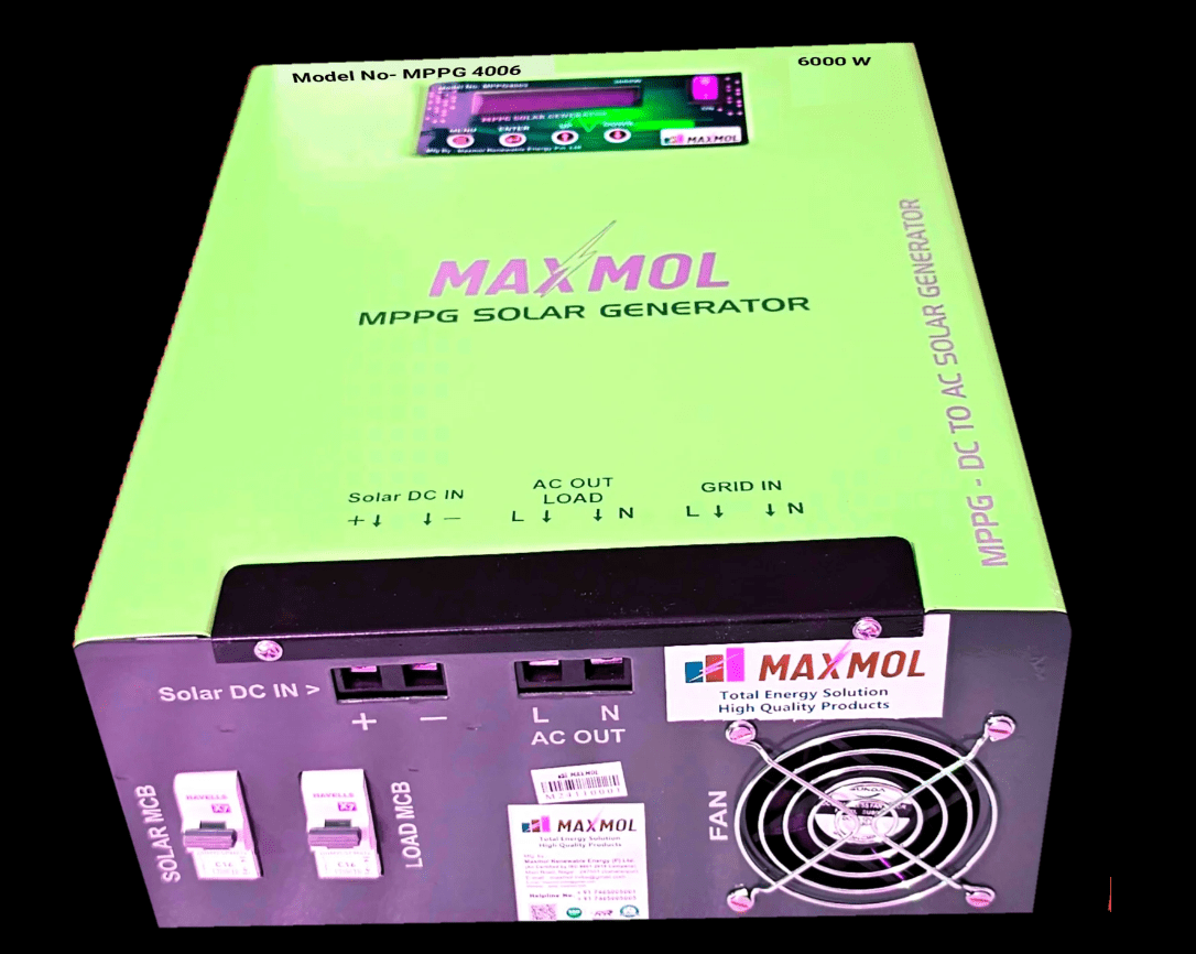 This device works on Solar Energy, does not work on AC volt supply. This product of Max Mall Renewable Energy provides 220 volt AC supply directly from mppg solar. By connecting this device directly to the solar without battery or electricity, all the appliances of the house can be run uninterruptedly. With this device, maximum energy of the solar panel can be used by connecting the solar panel as per the requirement of your load. This device is very easy to use. This mppg solar generator of maxmol company is also useful for those users who have installed on grid solar system or off grid solar system who are not able to use 100% of solar energy. By installing this system, 100% of solar energy can be used