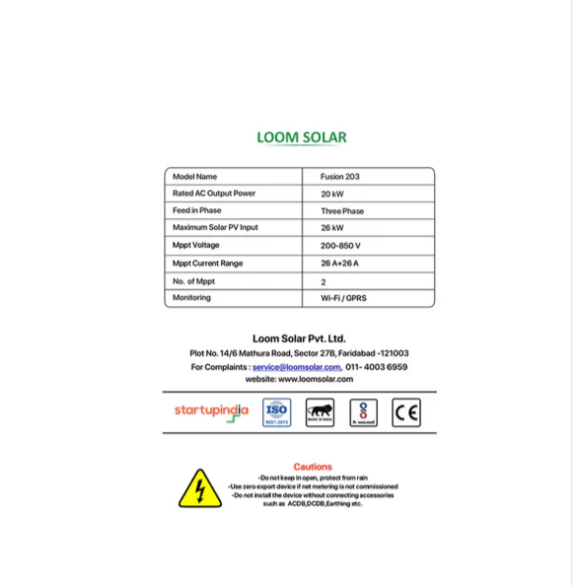 Loom Solar Grid Tied Inverters are powerful inverters that convert direct current (DC) electricity into alternating current (AC), It is also called an On-grid system which works without a battery. The main purpose of a Grid-tied inverter is to supply power from the main supply to homes/offices and feed the Generation of solar Power to the main supply.