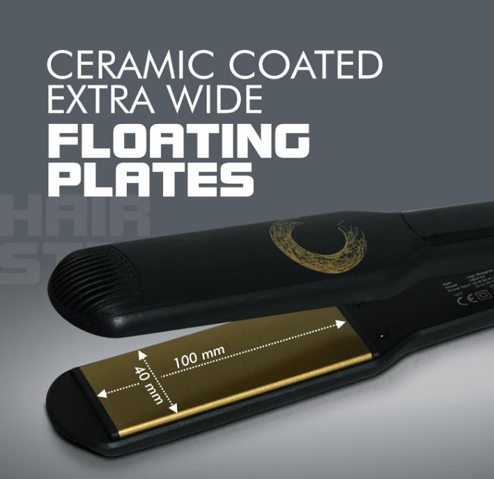 - Wide, keratin-infused plates for smooth, shiny hair