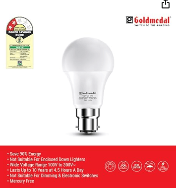 Experience brilliant illumination with the GoldMedal 9W Cool White LED Bulb, designed to deliver high efficiency, long life, and superior brightness. With its sleek design and energy-saving technology, this LED bulb is perfect for homes, offices, and commercial spaces.