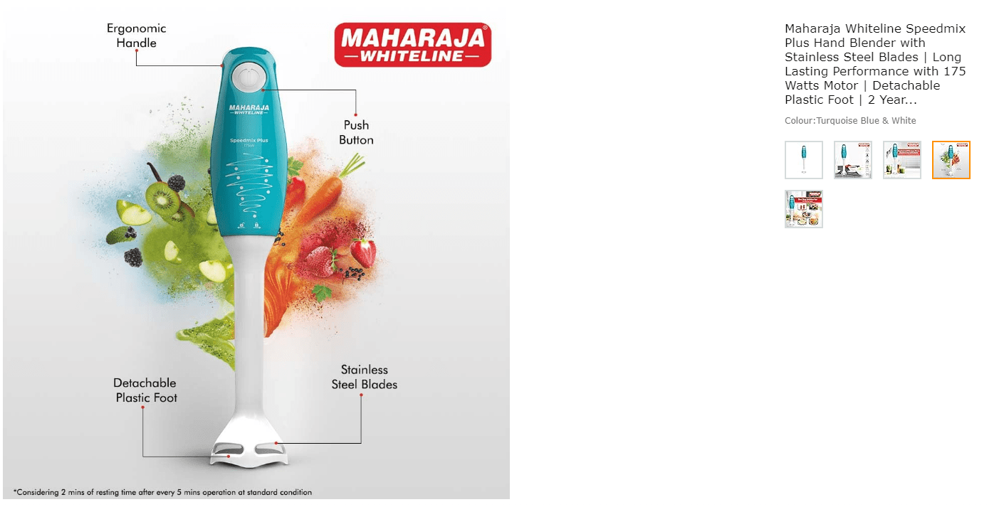 • Long Lasting Performance with 175W Motor: Equipped with a 175-Watt motor, the hand blender ensures right amount of power and long lasting durability