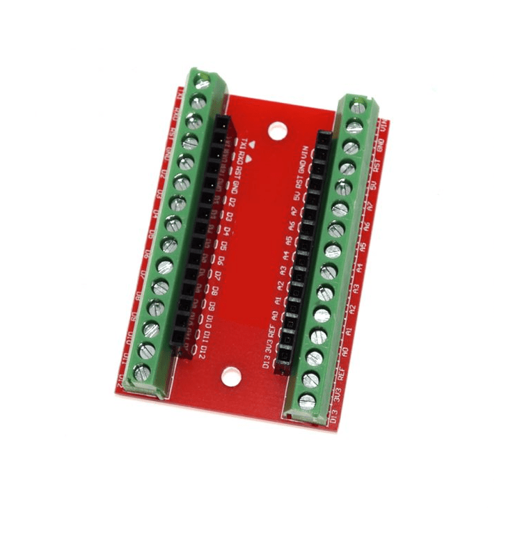 NANO IO Shield Expansion Board For Arduino Screw Terminals is a small simple Arduino Nano extension board, it will be the Nano all pins of derivation, convenient connection and we do the experiments.