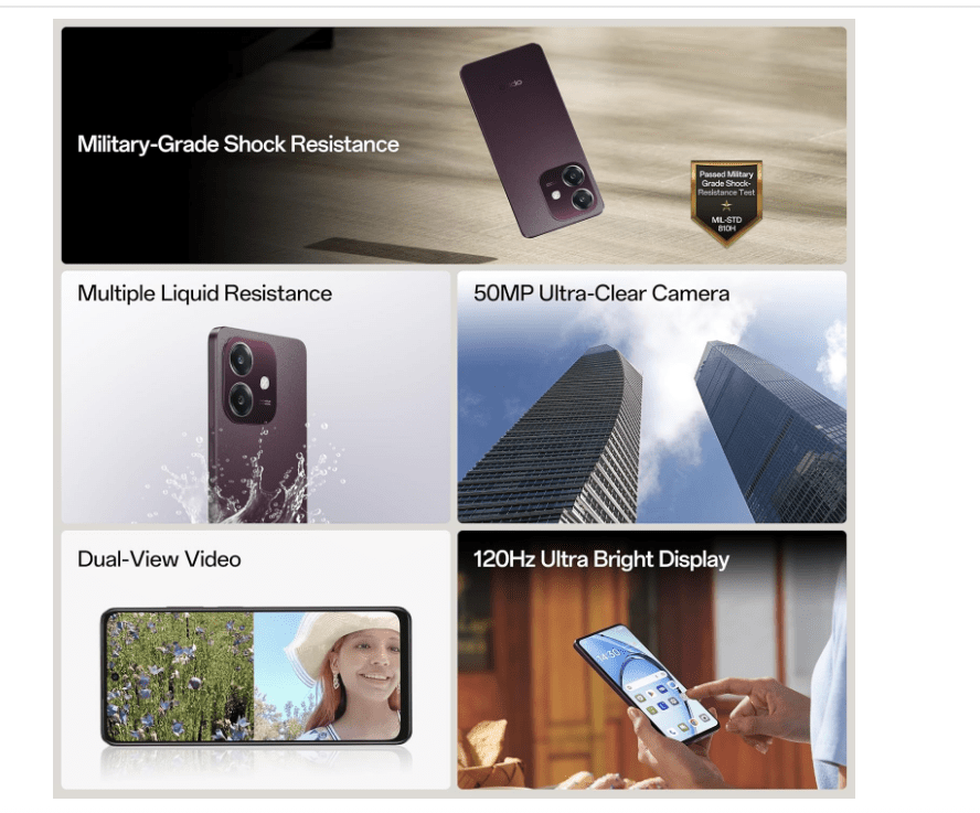 • MEMORY, STORAGE,SIM & PROCESSOR : 6GB RAM|128 GB ROM | Dual 5G Sim Slot |Latest Android 14 Operating System and ColorOS 14.0 System Platform with MediaTek Dimensity 6300.