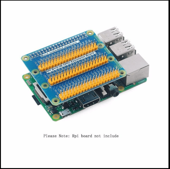This is a GPIO expansion board which expands standard raspberry pi GPIO to three individual set of GPIO’s. The board is compatible with the Raspberry Pi 3, 3B+, and 4B. The board comes with mounting hardware so that this can be mounted on the raspberry pi firmly.