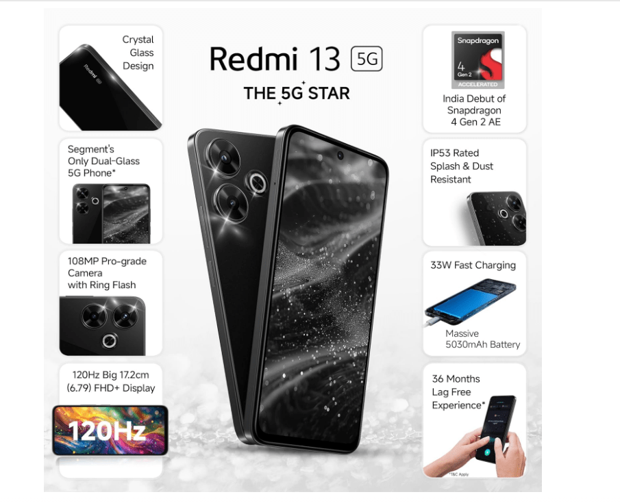 Redmi 13 5G, Black Diamond, 8GB+128GB Mobile Phone Information