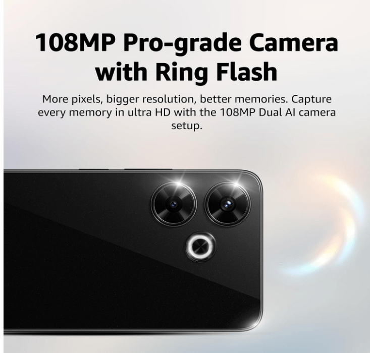• Camera: 108MP f/1.75 Dual camera with 3X In-Sensor Zoom, classic film filters, Portrait, Night Mode,HDR, 108MP mode, Time-lapse, Google lens, Macro Video | 13MP Selfie camera