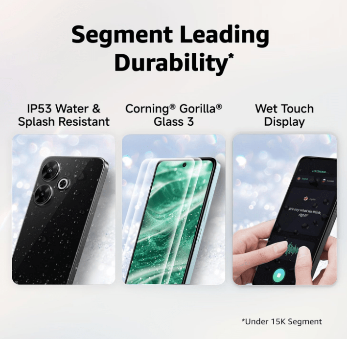 • Processor: Qualcomm Snapdragon 4 Gen2 Accelerated Edition Octa-core processor for high performance ; Up to 2.3GHz; Android 14 with Xiaomi HyperOS, Upto 16GB RAM including 8GB Virtual RAM