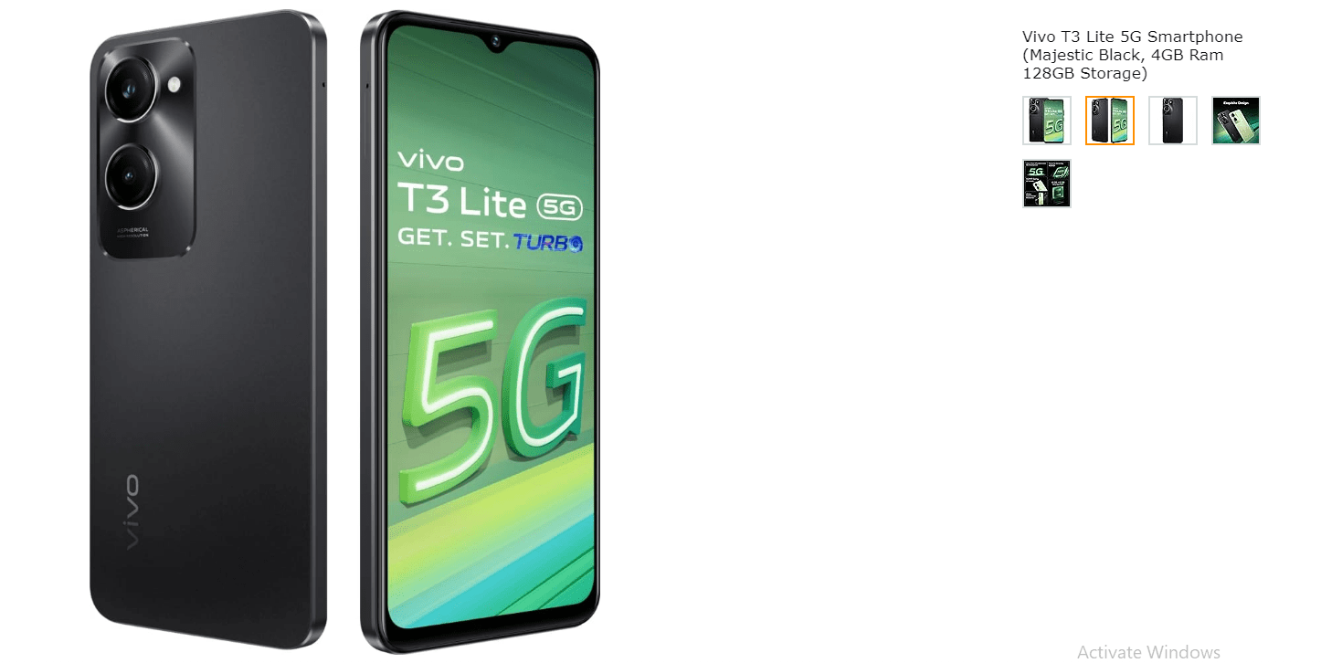 Vivo T3 Lite 5G Smartphone (Majestic Black, 4GB Ram 128GB Storage)