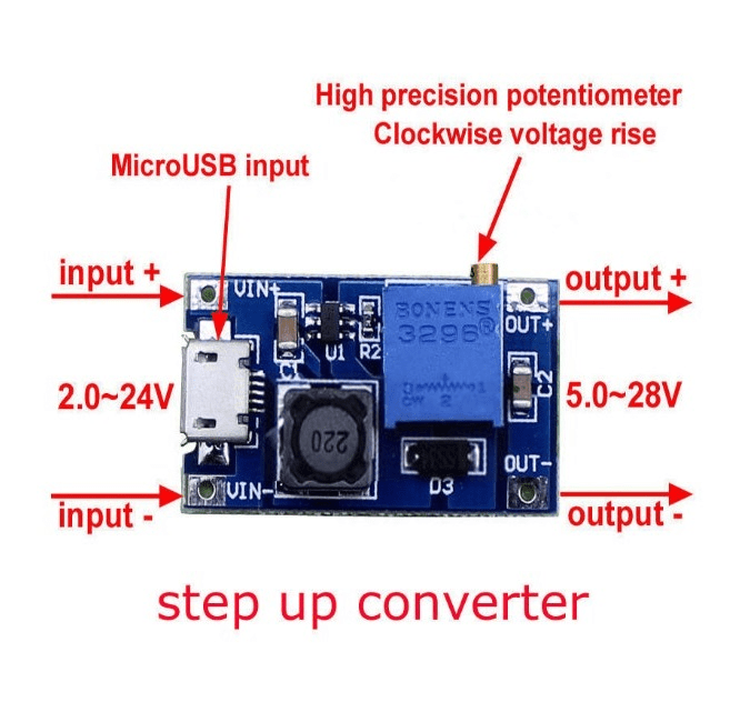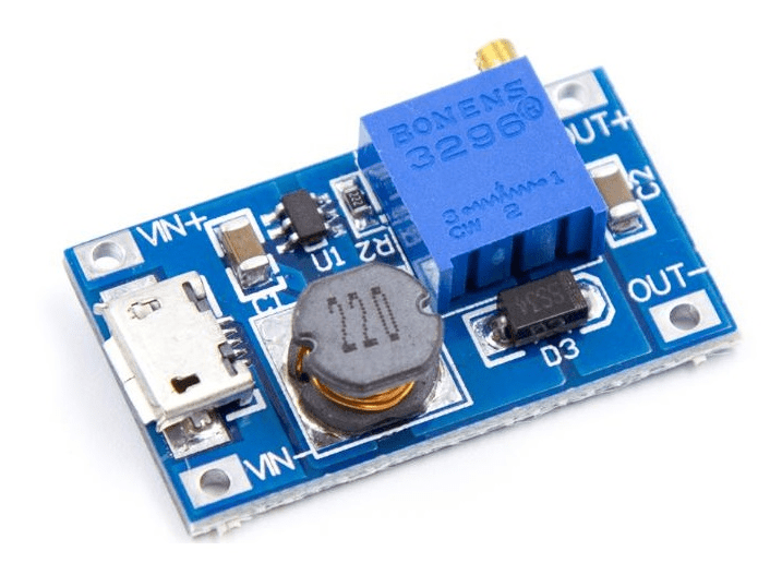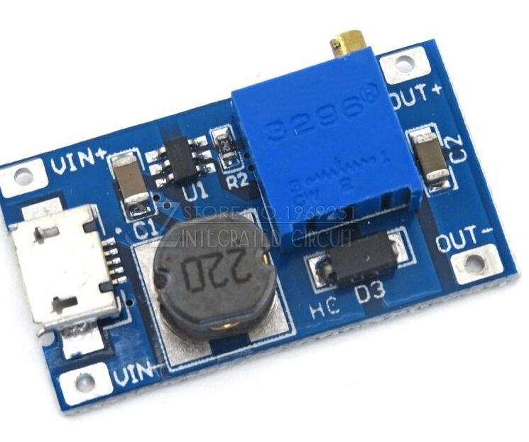This Multipurpose tiny and very cheap voltage booster can be very useful in your various DIY project as it has a variable output voltage range from 5.5V DC to 28V DC at up to peak 2A of current capacity. Additionally, the module has a Micro-USB input voltage port so you can get the input to the module from various sources like computer port, Mobile phone, Power Banks etc.